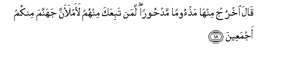 18. Qala okhruj minha mathooman madhooran laman tabiAAaka minhum laamlaanna jahannama minkum ajmaAAeena