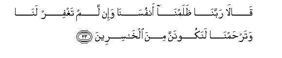 23. Qala rabbana thalamna anfusana wa-in lam taghfir lana watarhamna lanakoonanna mina alkhasireena