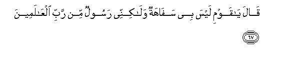 67. Qala ya qawmi laysa bee safahatun walakinnee rasoolun min rabbi alAAalameena