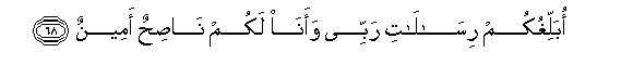 68. Oballighukum risalati rabbee waana lakum nasihun ameenun