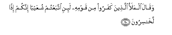 90. Waqala almalao allatheena kafaroo min qawmihi la-ini ittabaAAtum shuAAayban innakum ithan lakhasiroona