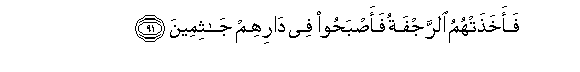 91. Faakhathat-humu alrrajfatu faasbahoo fee darihim jathimeena