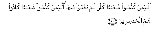 92. Allatheena kaththaboo shuAAayban kaan lam yaghnaw feeha allatheena kaththaboo shuAAayban kanoo humu alkhasireena