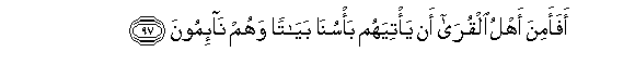97. Afaamina ahlu alqura an ya/tiyahum ba/suna bayatan wahum na-imoona