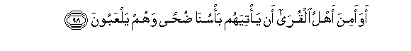 98. Awa amina ahlu alqura an ya/tiyahum ba/suna duhan wahum yalAAaboona