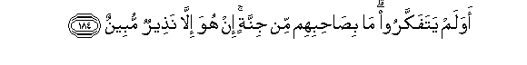 184. Awa lam yatafakkaroo ma bisahibihim min jinnatin in huwa illa natheerun mubeenun