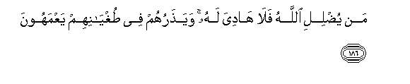186. Man yudlili Allahu fala hadiya lahu wayatharuhum fee tughyanihim yaAAmahoona