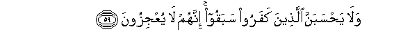 59. Wala yahsabanna allatheena kafaroo sabaqoo innahum la yuAAjizoona