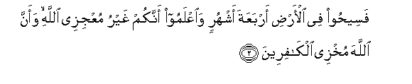 2. Faseehoo fee al-ardi arbaAAata ashhurin waiAAlamoo annakum ghayru muAAjizee Allahi waanna Allaha mukhzee alkafireena