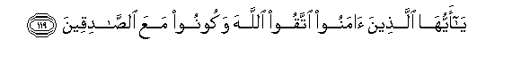 119. Ya ayyuha allatheena amanoo ittaqoo Allaha wakoonoo maAAa alssadiqeena