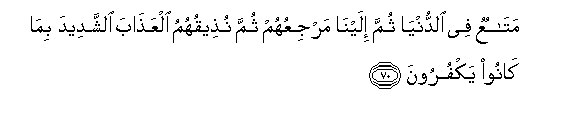 70. MataAAun fee alddunya thumma ilayna marjiAAuhum thumma nutheequhumu alAAathaba alshshadeeda bima kanoo yakfuroona