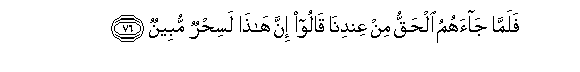 76. Falamma jaahumu alhaqqu min AAindina qaloo inna hatha lasihrun mubeenun