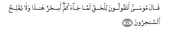 77. Qala moosa ataqooloona lilhaqqi lamma jaakum asihrun hatha wala yuflihu alssahiroona