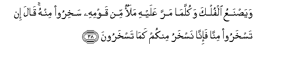 38. WayasnaAAu alfulka wakullama marra AAalayhi malaon min qawmihi sakhiroo minhu qala in taskharoo minna fa-inna naskharu minkum kama taskharoona