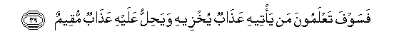 39. "But soon will ye know who it is on whom will descend a penalty that will cover them with shame,- on whom will be unloosed a penalty lasting:"