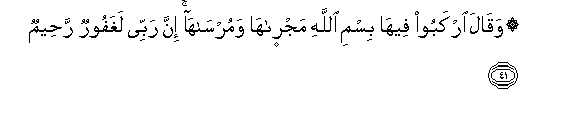 41. Waqala irkaboo feeha bismi Allahi majraha wamursaha inna rabbee laghafoorun raheemun