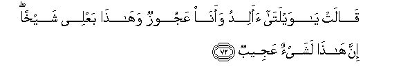 72. Qalat ya waylata aalidu waana AAajoozun wahatha baAAlee shaykhan inna hatha lashay-on AAajeebun