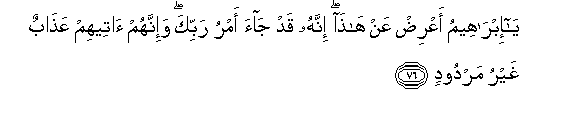 76. Ya ibraheemu aAArid AAan hatha innahu qad jaa amru rabbika wa-innahum ateehim AAathabun ghayru mardoodin