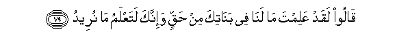79. Qaloo laqad AAalimta ma lana fee banatika min haqqin wa-innaka lataAAlamu ma nureedu