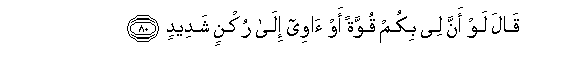 80. Qala law anna lee bikum quwwatan aw awee ila ruknin shadeedin