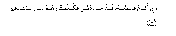 27. Wa-in kana qameesuhu qudda min duburin fakathabat wahuwa mina alssadiqeena