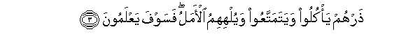 3. Tharhum ya/kuloo wayatamattaAAoo wayulhihimu al-amalu fasawfa yaAAlamoona