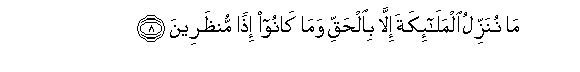 8. Ma nunazzilu almala-ikata illa bialhaqqi wama kanoo ithan munthareena
