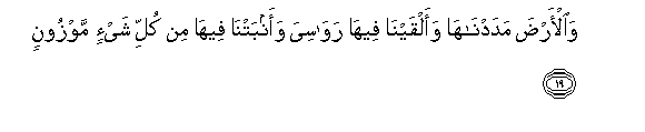 19. Waal-arda madadnaha waalqayna feeha rawasiya waanbatna feeha min kulli shay-in mawzoonin