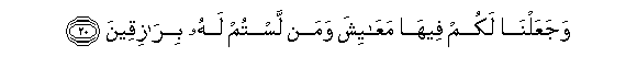 20. WajaAAalna lakum feeha maAAayisha waman lastum lahu biraziqeena