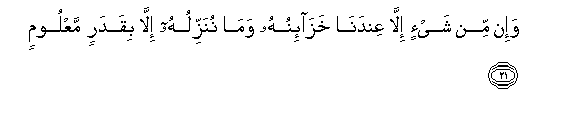 21. Wa-in min shay-in illa AAindana khaza-inuhu wama nunazziluhu illa biqadarin maAAloomin