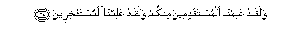 24. Walaqad AAalimna almustaqdimeena minkum walaqad AAalimna almusta/khireena
