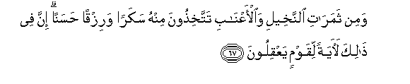 67. Wamin thamarati alnnakheeli waal-aAAnabi tattakhithoona minhu sakaran warizqan hasanan inna fee thalika laayatan liqawmin yaAAqiloona