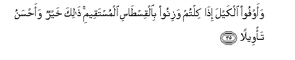 35. Waawfoo alkayla itha kiltum wazinoo bialqistasi almustaqeemi thalika khayrun waahsanu ta/weelan