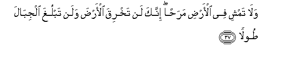 37. Wala tamshi fee al-ardi marahan innaka lan takhriqa al-arda walan tablugha aljibala toolan