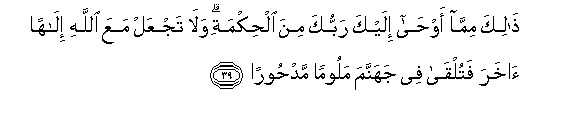39. Thalika mimma awha ilayka rabbuka mina alhikmati wala tajAAal maAAa Allahi ilahan akhara fatulqa fee jahannama malooman madhooran