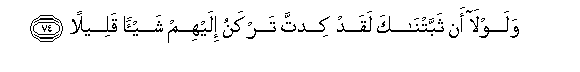 74. Walawla an thabbatnaka laqad kidta tarkanu ilayhim shay-an qaleelan