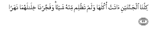 33. Kilta aljannatayni atat okulaha walam tathlim minhu shay-an wafajjarna khilalahuma naharan