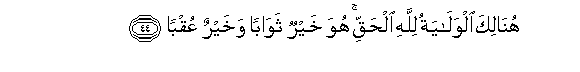 44. Hunalika alwalayatu lillahi alhaqqi huwa khayrun thawaban wakhayrun AAuqban