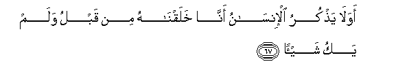 67. Awa la yathkuru al-insanu anna khalaqnahu min qablu walam yaku shay-an