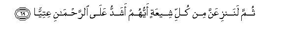 69. Thumma lananziAAanna min kulli sheeAAatin ayyuhum ashaddu AAala alrrahmani AAitiyyan