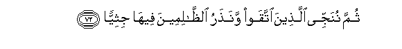 72. Thumma nunajjee allatheena ittaqaw wanatharu alththalimeena feeha jithiyyan