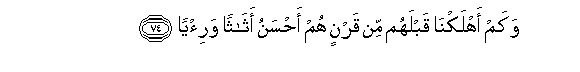 74. Wakam ahlakna qablahum min qarnin hum ahsanu athathan wari/yan