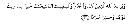 76. Wayazeedu Allahu allatheena ihtadaw hudan waalbaqiyatu alssalihatu khayrun AAinda rabbika thawaban wakhayrun maraddan