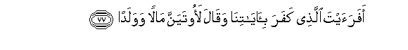 77. Afaraayta allathee kafara bi-ayatina waqala laootayanna malan wawaladan