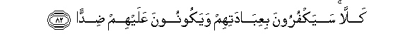 82. Kalla sayakfuroona biAAibadatihim wayakoonoona AAalayhim diddan