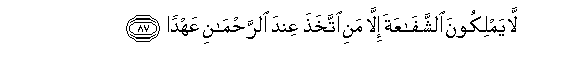 87. La yamlikoona alshshafaAAata illa mani ittakhatha AAinda alrrahmani AAahdan