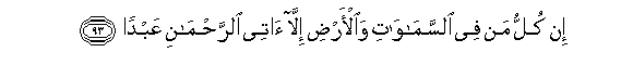 93. In kullu man fee alssamawati waal-ardi illa atee alrrahmani AAabdan