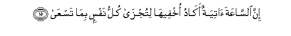 15. Inna alssaAAata atiyatun akadu okhfeeha litujza kullu nafsin bima tasAAa