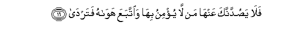 16. Fala yasuddannaka AAanha man la yu/minu biha waittabaAAa hawahu fatarda