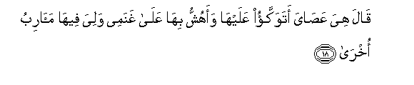 18. Qala hiya AAasaya atawakkao AAalayha waahushshu biha AAala ghanamee waliya feeha maaribu okhra